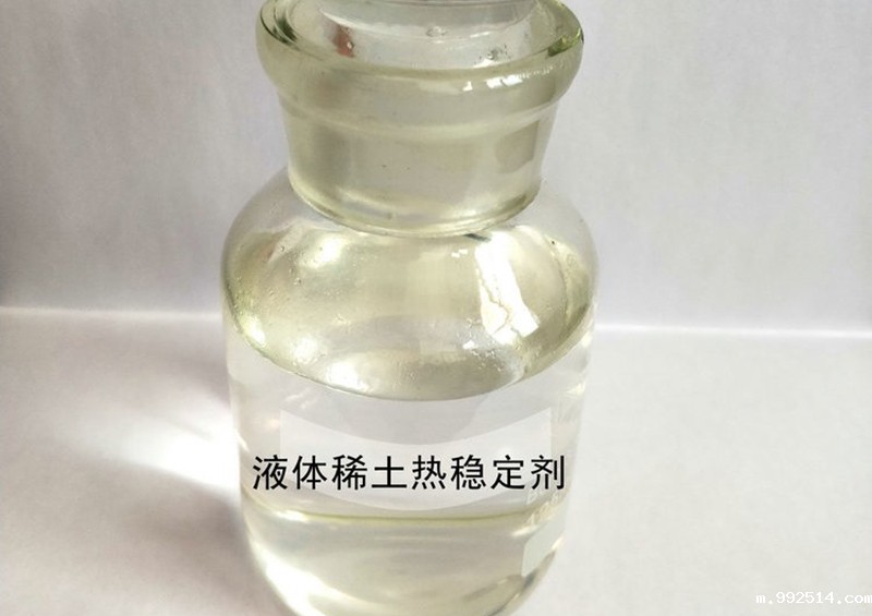液体稀土热稳定由稀土元素的羧酸盐或脂肪酸盐为主要组分而合成。它含有适量的稀土金属成份。它不但可以取代铅镉盐类和有机锡类等有毒稳定剂,而且具有相当好的热稳定性、光稳定性和透明性及着色力,外观呈白色或淡黄色粉末状、片状、液体。
